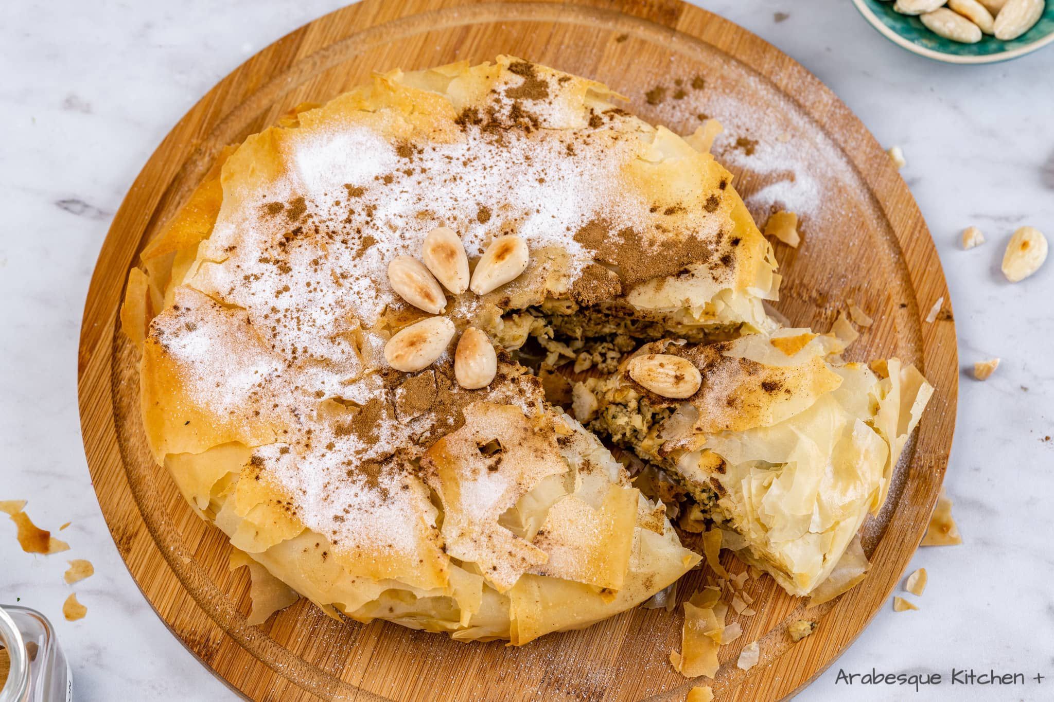 What It Is:Pastilla is a savory pie with a unique sweet-and-salty flavor combination. It’s typically made with pigeon or chicken, mixed with almonds, eggs, cinnamon, and sugar, all wrapped in layers of crispy, flaky phyllo dough. The top is dusted with powdered sugar and cinnamon, creating a perfect balance of flavors.